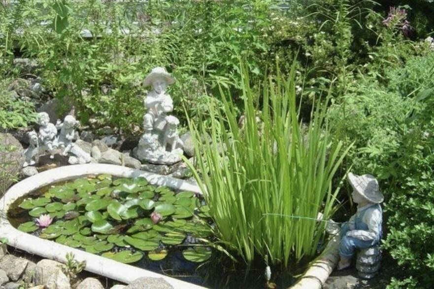 Делать уютный пруд из старой чугунной или акриловой ванны проще простого. Такой водоём не только не требует тщательного ухода, но и может стать настоящей изюминкой вашего дачного участка.