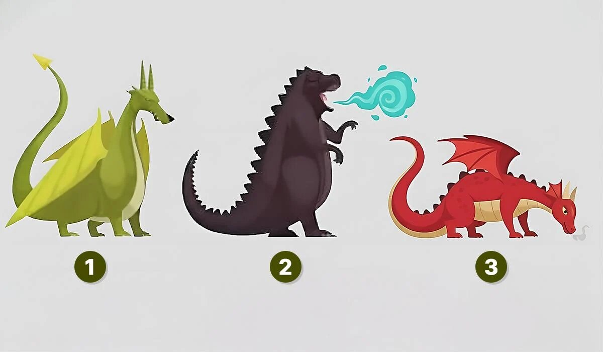 Чтобы пройти тест, достаточно выбрать одного из трех драконов, каждый из которых характеризует определенные черты вашей личности. Вот что ждёт вас от вашего выбора: