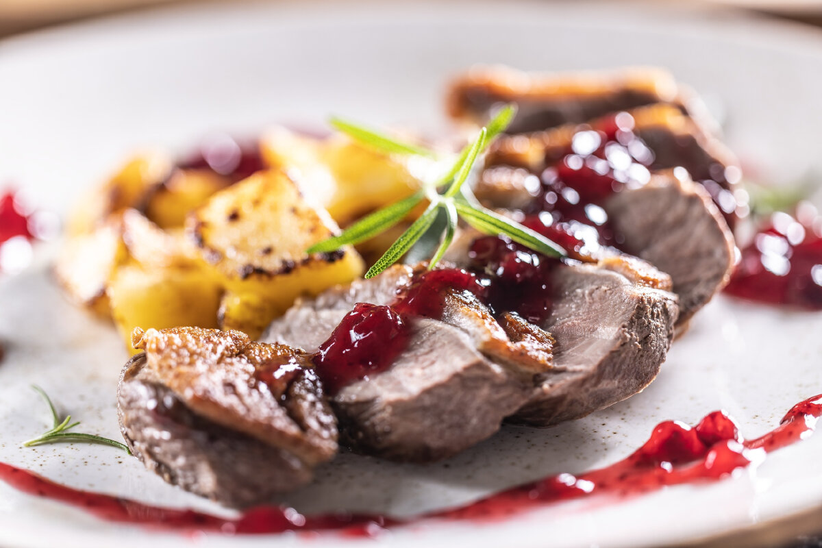 Этот восхитительный рецепт утки с клюквенным соусом станет настоящим украшением любого праздничного стола. Нежное мясо утки гармонично сочетается с кисло-сладким соусом и дополняется ароматным яблочным пюре и хрустящим картофелем, создавая уникальный баланс вкусов, который непременно удивит ваших гостей.