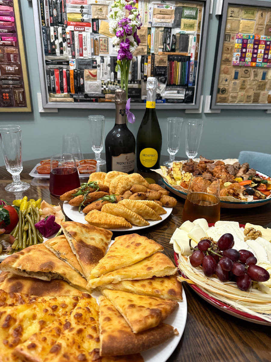 Чтобы создать атмосферу настоящего праздника, был выбран фуршетный стиль подачи — идеальный вариант для таких случаев. Мы решили, что кавказские закуски станут основным акцентом стола, и, как показала практика, это было отличное решение.