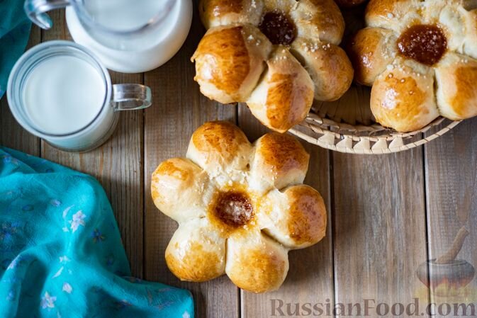 Не забудьте также о сдобных булочках-цветочках с джемом и штрейзелем. Эти красивые и мягкие булочки произведут настоящий фурор благодаря своей интересной форме и закусочному различию.