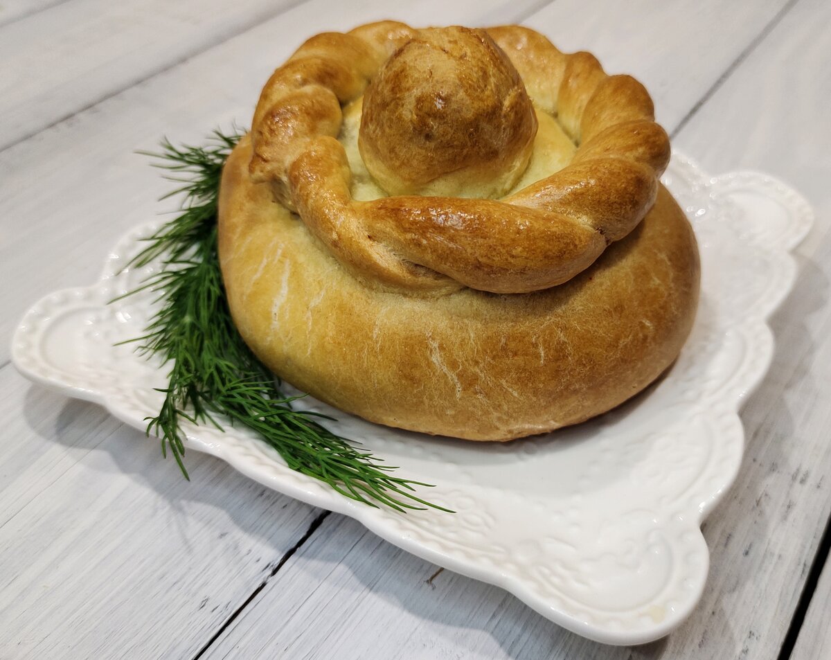 Соберите тестяной мешочек, переверните швом вниз и положите на противень. Из оставшегося теста сделайте жгутики и закруглите края для создания крепления горшка. Не забудьте проделать отверстие для ручки на крышке.