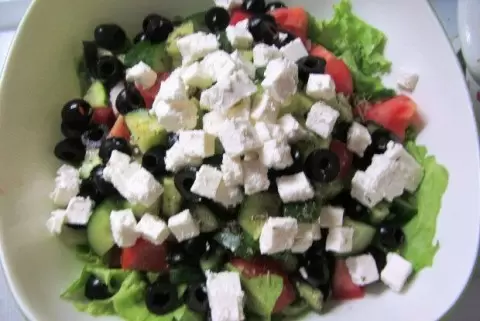 Классический греческий салат превращается в нечто особенное с добавлением шпината и ромен-латука. Этот свежий акцент делает его еще более ароматным и изысканным.