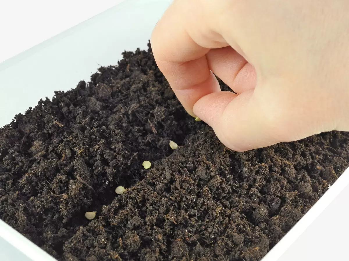 Засыпьте семена влажным грунтом и оставьте на час при комнатной температуре. Накройте пленкой, плотно прижав края, и уберите в темное место, например, шкаф.