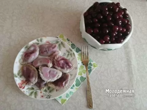 Приступаем к приготовлению: сначала тщательно промыть вишню и удалить косточки (рекомендуется использовать кислую вишню для лучшего вкуса). Далее следует замесить тесто: взбить яйцо с солью и водой, а затем влить смесь в муку, замешивая крутое тесто. Чем плотнее оно будет, тем легче его будет лепить.