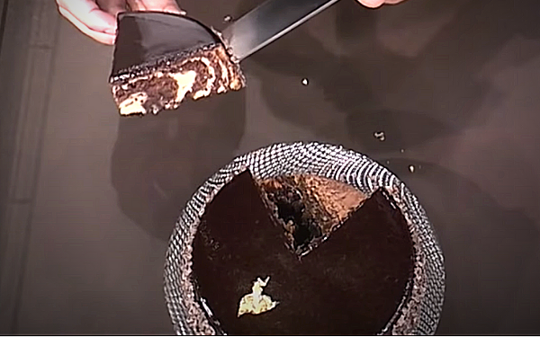 Форму для выпечки смазать маслом и застелить пергаментом. На дно формы выложить 3 столовые ложки ванильного теста, затем 3 ложки шоколадного теста и так чередовать, пока все тесто не будет использовано. Наполните форму на 3/4.