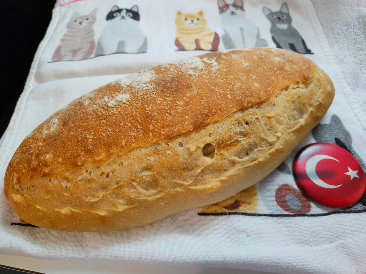 Когда хлеб будет готов, остудите его на решетке. В разрезе он получится пористым и воздушным, как и полагается настоящему турецкому хлебу.