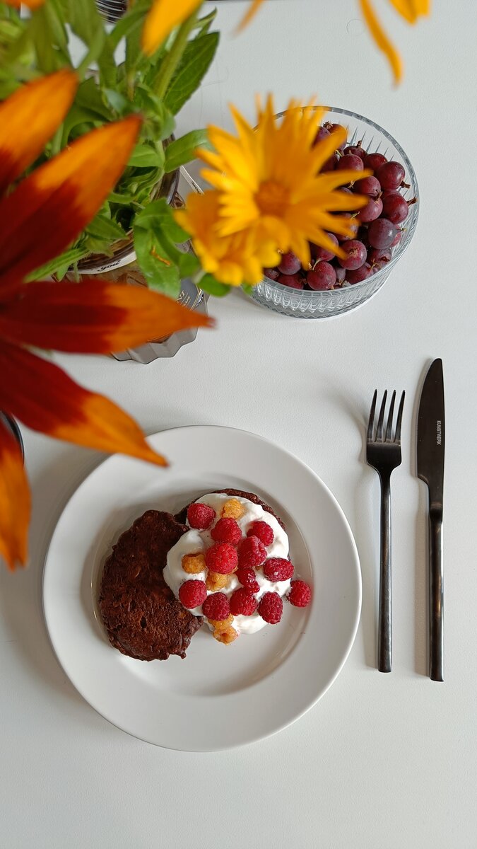 Несмотря на то, что изначально планировалось приготовить вафли, в итоге из-за поломки мультипекаря получились оладьи. В результате эксперимента вышли мягкие и ароматные изделия, напоминающие по текстуре брауни. Эти лакомства, взявшие за основу яблоки и овсянку, стали отличным решением для тех, кто не хочет употреблять сахар.
