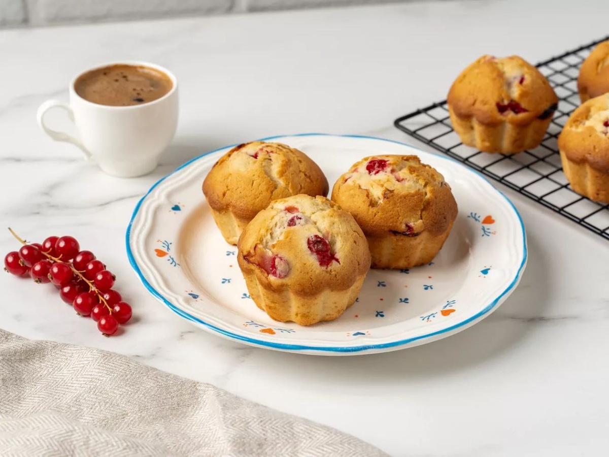 Ягоды красной смородины отлично подходят для запеканки маффинов, привнося в них прекрасную кислинку и добавляя особую влажность благодаря своим натуральным сокам. Не имеет значения, выберете ли вы свежие или замороженные плоды — главное, хорошо перемешать тесто, чтобы они ровно распределились во всех его слоях.