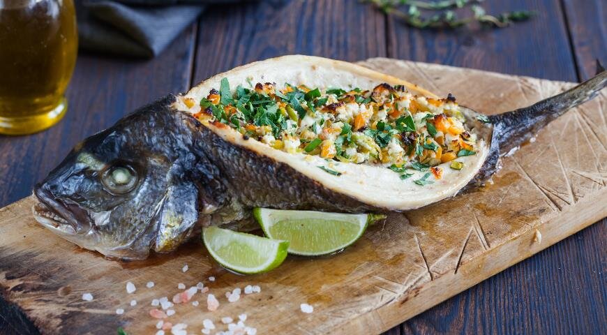 Фаршированная дорада — это не только вкусное, но и эффектное блюдо, которое приятно удивит ваших гостей. Это варьируемое угощение особенно удобно тем, что к нему не требуется отдельный гарнир. Кроме того, метод, который будет представлен ниже, намного проще классического, где необходимо снимать кожу.