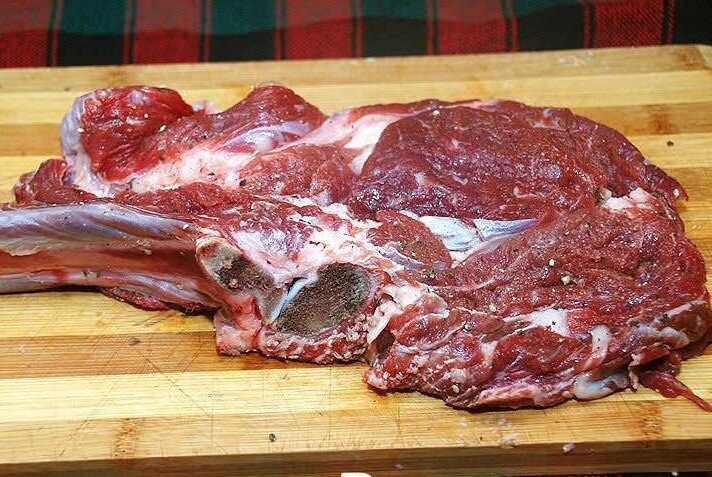 Бифштекс, что переводится как "кусок говядины", готовится из говяжьей вырезки и отличается от других блюд. В этом случае мясо не отбивается, а маринуется. Для этого его солят, перчат и посыпают сухими травами. Зубчик чеснока растирается с лимонным соком, и этой смесью обмазывается мясо, после чего его помещают в холодильник на 30 минут.