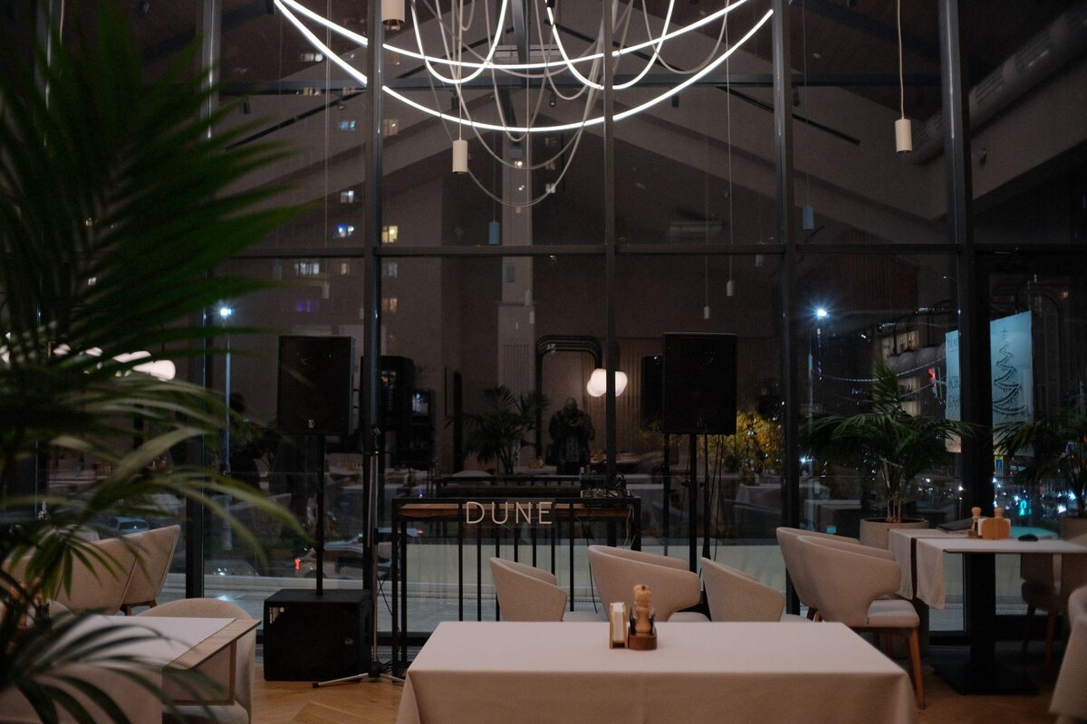 Для детей также найдется занимательная программа, ведь пока родители наслаждаются атмосферой, их развлекает Чебурашка. В меню для маленьких гурманов — милкшейки и картошка фри. А для тех, кто хочет отдохнуть без детей, Dune предлагает VIP-зал для торжеств и уютный кабинет.