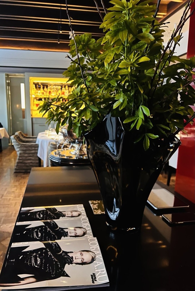 Дизайн интерьера, разработанный Анастасией Хальчицкой, представляет собой настоящую коллекцию визуальных удовольствий. Гостям открываются виды на изысканные муранские люстры и старинные французские гобелены. Столы, накрытые белоснежными скатертями, благоухают атмосферой элегантности благодаря фарфору из Германии, украшенному оригинальным узором с бергамотами.