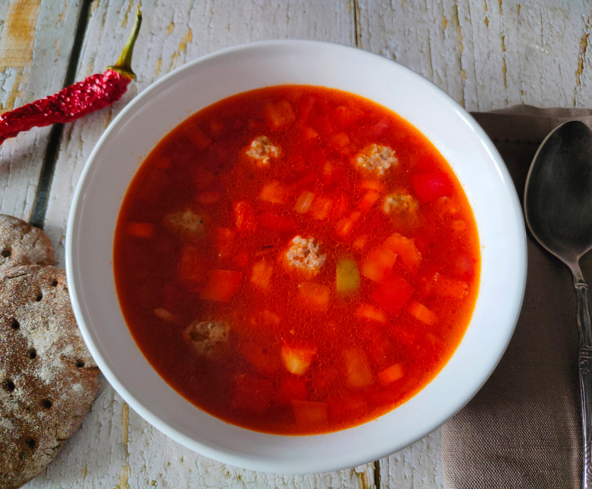 Благодаря рису, этот суп напоминает по вкусу классический харчо, добавляя в обыденное меню особый восточный шарм.