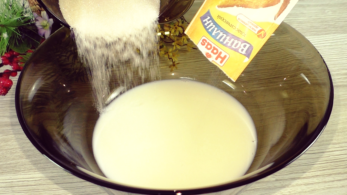 Процесс приготовления начинается с подогрева молока до теплого состояния, после чего добавляется ванилин и сахар. Дрожжи можно добавить сразу в молоко или же вмешать их в муку — как удобнее. Если используют свежие дрожжи, 20 г растворяют в теплой смеси молока и сахара.