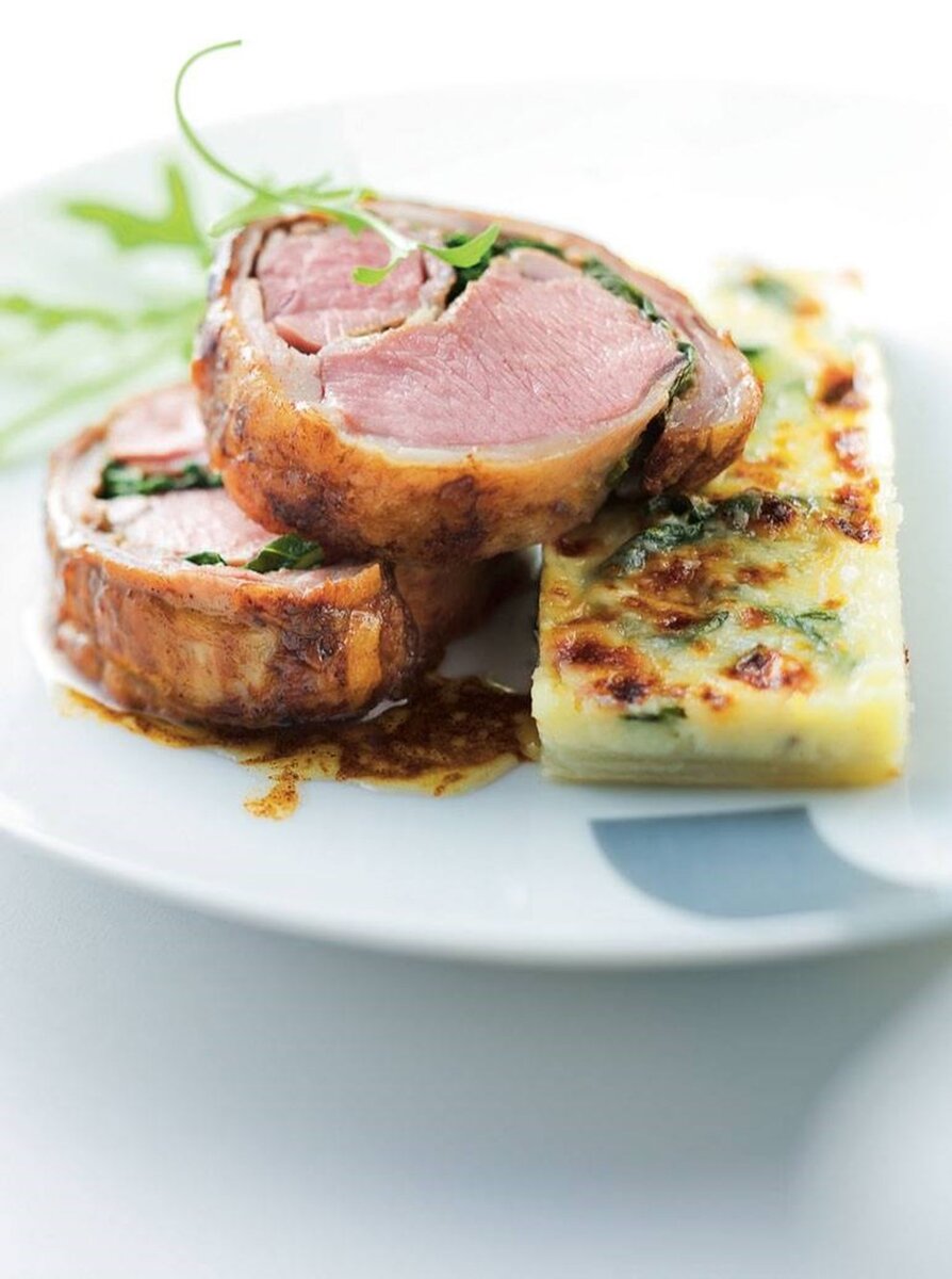 Сначала разрезать седло барашка поперек, приправить солью и перцем. Замочить в мякише хлеба под кожей. Обмазать обе стороны горчицами и посыпать свежим базиликом. Затем сложить оба куска вместе и обвязать.Очистить стебли мангольда, оставить зеленые части, нарезать белые части соломкой. Обжарить их на оливковом и сливочном масле, добавить овощной бульон и потушить до мягкости. Тем временем смешать тертые сыры со сливками и вылить половину в форму для запекания. Отварить зеленые части мангольда в подсоленной воде, затем добавить к блюду.Нагреть чугунок, подрумянить мясо в сливочном и арахисовом масле. Затем поместить седло в разогретую до 180°C духовку на 6-7 минут, поливая соком. Дать мясу отдохнуть 10 минут, затем нарезать тонкими кусочками и посыпать флер-де-сель перед подачей.