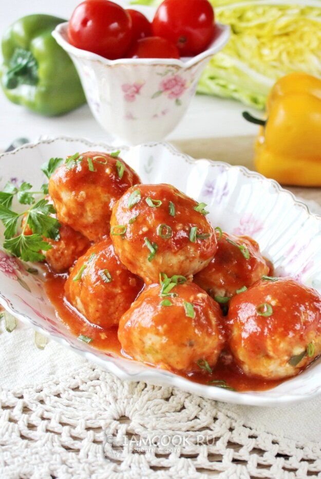 Тефтели с пекинской капустой готовы к подаче!