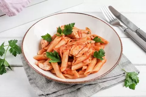 В мире кулинарии помидоры занимают особое место, вызывая нестерпимые споры о своем статусе: одни считают их ягодами, другие — овощами, а третьи — фруктами. Но одно остаётся неизменным: томаты всегда радуют своим вкусом. И в этом рецепте пенне «Виченца» с индейкой можно насладиться их неповторимым ароматом и вкусом.