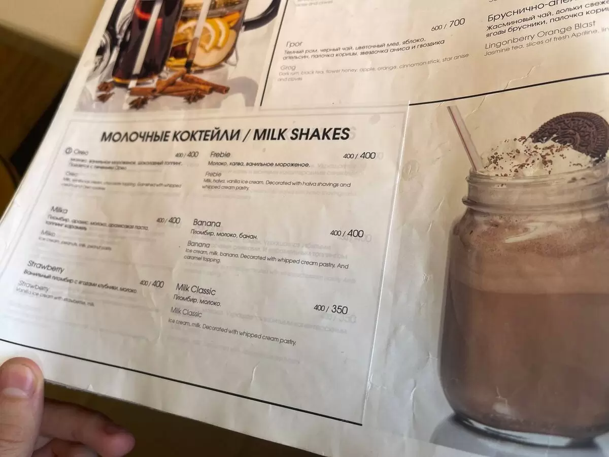 Меню может шокировать: не только высокие цены, но и его визуальное состояние — оно выглядит изношенным и рваным. Такие детали, как грязные люстры и затопленные углы, совершенно не соответствуют ожиданиям от заведения, которое заявляет о себе как о высококлассном.