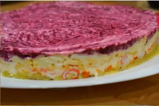 Салат «Селедка под шубой» занимает особое место на столах многих семей, но в новом исполнении он обретает еще более интересный вкус и текстуру. Классическое сочетание мяса сельди с овощами и майонезом удачно дополняется нежными яйцами и крабовыми палочками, создавая уникальную гастрономическую композицию.