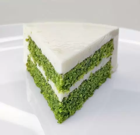 В блендере соединяют шпинат с листьями мяты и яйцом, затем добавляют эритрит и оставшиеся яйца. В массу добавляется разрыхлитель и кокосовая мука, после чего все тщательно взбивается.