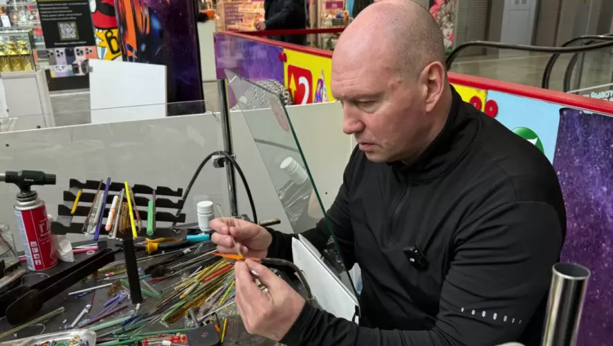 Сегодня у него небольшая мастерская, оснащённая столом с горелкой, где он создаёт миниатюрные шедевры, включая серьги и фигурки персонажей. Хотя у него нет возможности использовать крупное оборудование, Алексей считает, что главное в этом деле — это желание и правильный подход к обучению.