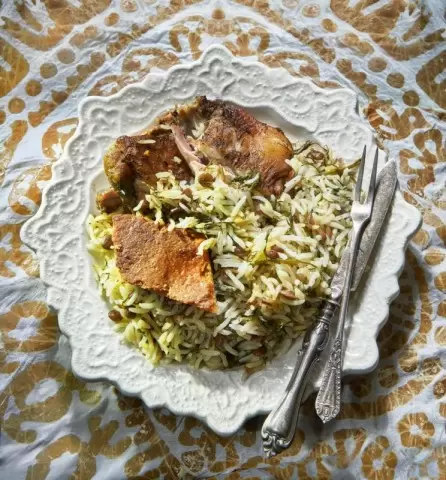 Этот рецепт — напоминание о том, что блюдо способно зафиксировать настроение вечера: в казане медленно томится мясо, рис и чечевица соединяются в слои, каждый слой даёт свой характер, а сверху тонкий настой шафрана напоминает о празднике. Важный момент — отдельно поджаренный гарнир (газмах) добавляет текстурную завершенность, словно одежда под парчовый наряд.