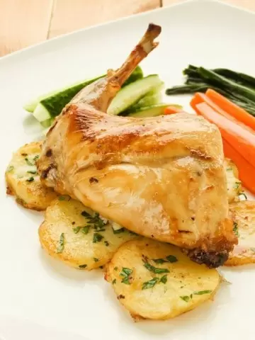Порадуйте свою семью оригинальным рецептом запечённой кроличьей ножки, сочетающейся с картофелем и свежими овощами. Это блюдо станет украшением любого стола.