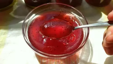 Полученный сок образует основу для джема, на 1 кг которого рекомендуется добавлять примерно 1-1,5 кг сахара. При перемешивании сахар должен полностью раствориться, и только после этого следует уменьшить огонь и варить смесь до загустения. Обязательно следить за пеной: ее лучше убрать, если хотите, чтобы джем выглядел более эстетично.
